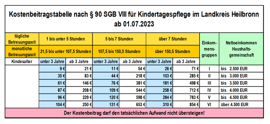 - Ein Beitrag wird an das Landratsamt gezahlt.Dieser ist abhängig von der Höhe der betreuten Stunden im Monat und dem Familieneinkommen. Das Landratsamt übernimmt dann einen Großteil der Betreuungskosten.